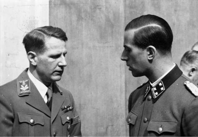 Karl Brandt (rechts) spricht mit Leonard Conti.