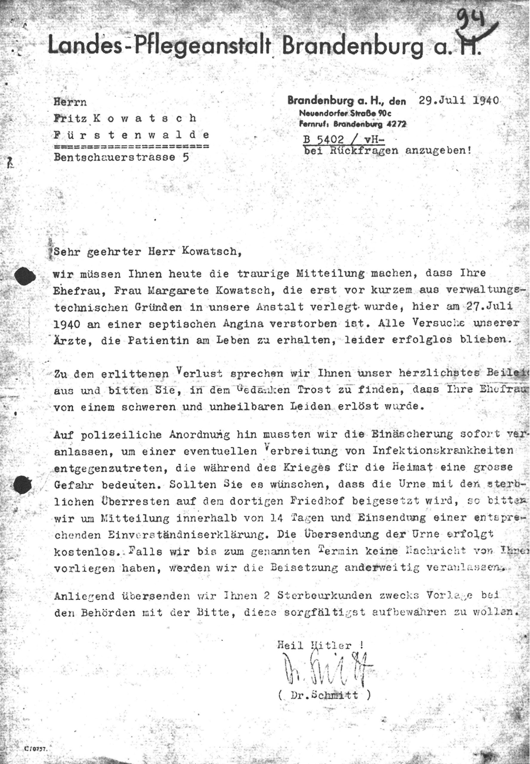 Sie haben es Landes-Pflegeanstalt Brandenburg an der Havel genannt.