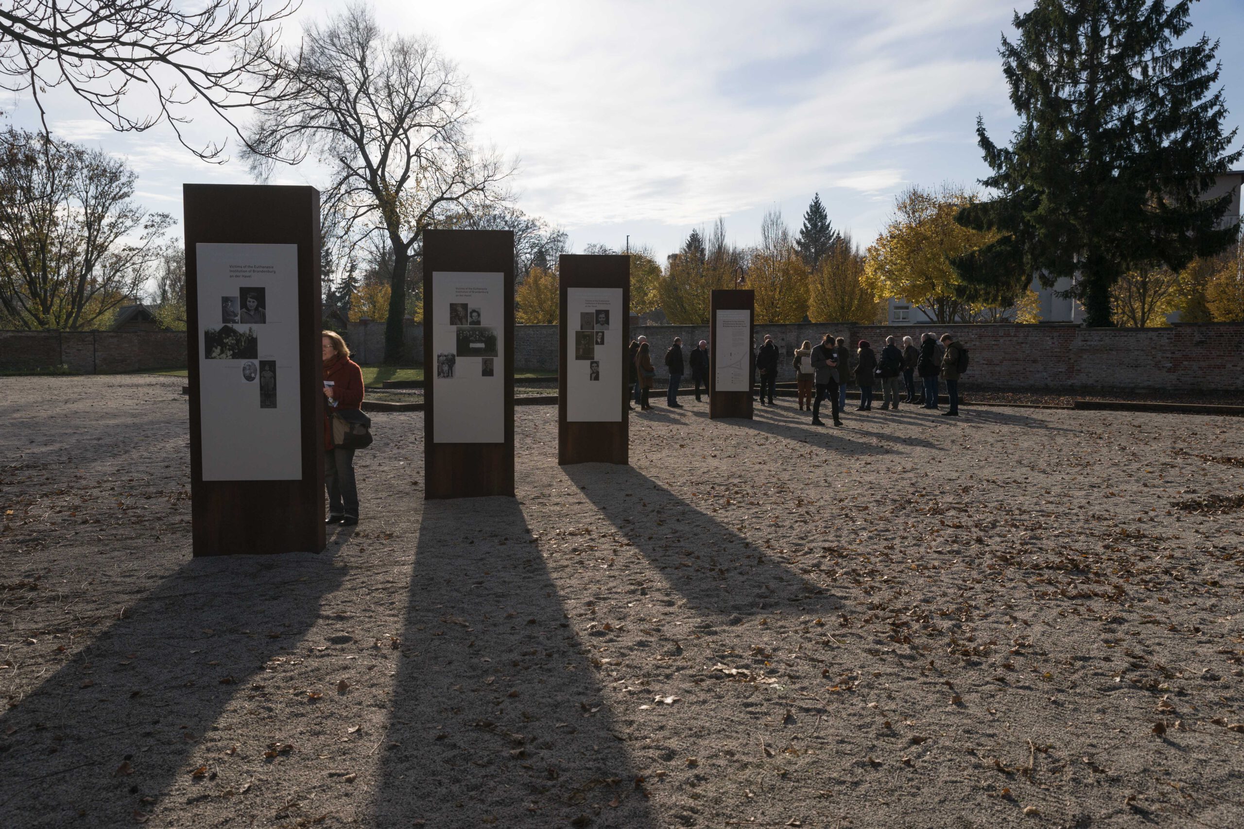 Auf den Stelen kann man etwas über die Euthanasie-Verbrechen lesen.